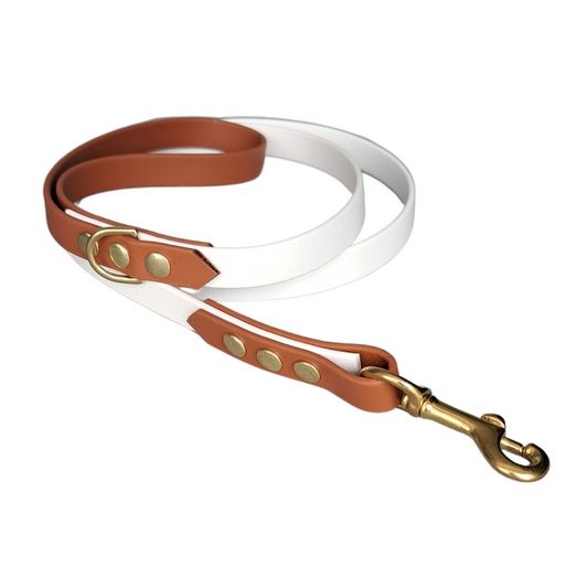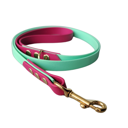 Onze tweekleurige Biothane leibanden zijn gemaakt voor honden die opvallen. Combineer functionaliteit met een vleugje luxe – soepel, stevig en waterproof.